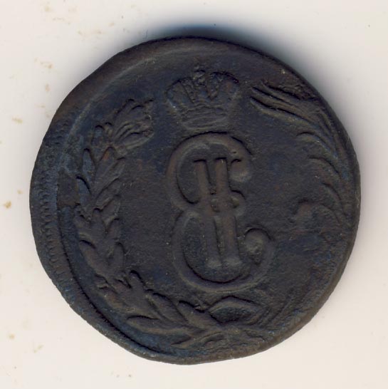 Лицевая сторона - два соболя поддерживают щит с обозначением номинала (две копейки) под короной, надпись «СИБИРСКАЯ МОНЕТА». Оборотная — вензель Екатерины II в венке из пальмовой и лавровой ветвей. Гурт — надпись «колыванская медь» или шнур. Вес — 13,10 грамма.