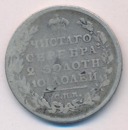 Лицевая сторона - двуглавый орел, дата и надпись «МОНЕТА РУБЛЬ», оборотная — окруженная венком из лавровой и дубовой ветвей надпись «ЧИСТАГО СЕРЕБРА 2 ЗОЛОТН 10 ДОЛЕЙ». Проба — 868, нормативный вес — 10,37 грамма.