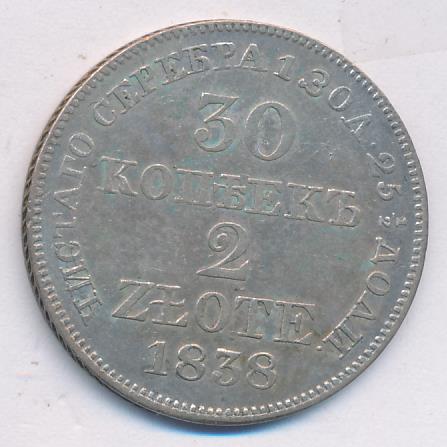 30 копеек — 2 злотых 1834-1841 годов