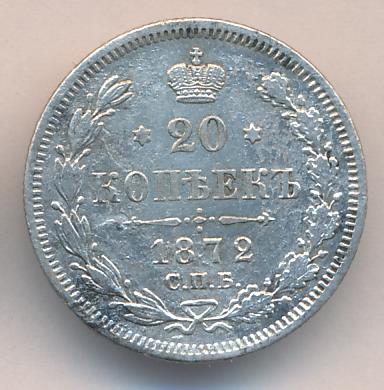 Лицевая сторона — гербовый орел, оборотная —обозначение номинала (20 копеекъ), окруженное венком из лавровой и дубовой ветвей и дата.