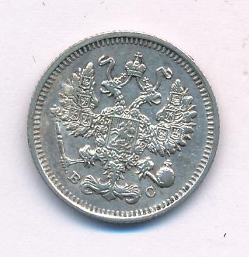 Лицевая сторона — гербовый орел, оборотная —обозначение номинала (10 копеекъ), окруженное венком из лавровой и дубовой ветвей и дата.