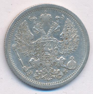 Лицевая сторона — гербовый орел, оборотная —обозначение номинала (20 копеекъ), окруженное венком из лавровой и дубовой ветвей и дата.