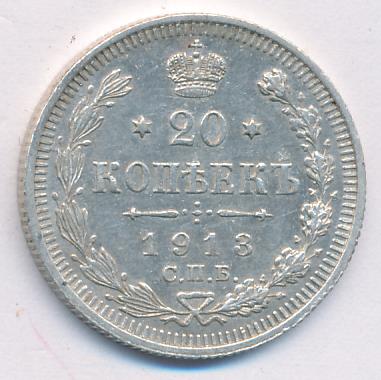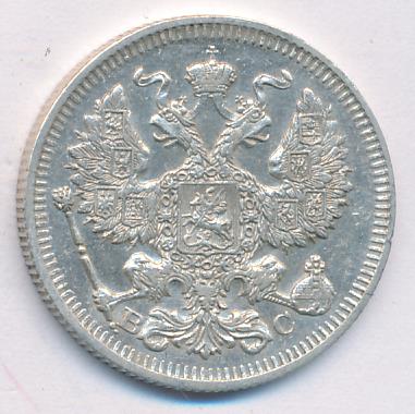 Лицевая сторона — гербовый орел, оборотная —обозначение номинала (20 копеекъ), окруженное венком из лавровой и дубовой ветвей и дата.