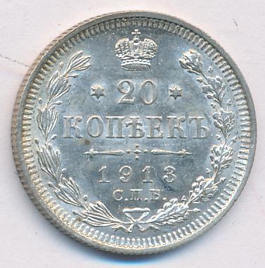 Лицевая сторона — гербовый орел, оборотная —обозначение номинала (20 копеекъ), окруженное венком из лавровой и дубовой ветвей и дата.
