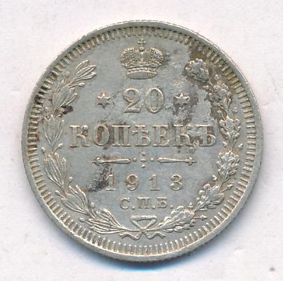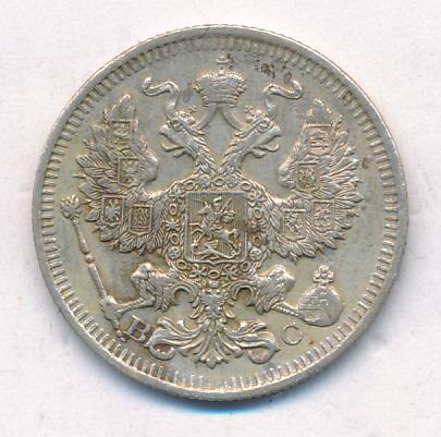 Лицевая сторона — гербовый орел, оборотная —обозначение номинала (20 копеекъ), окруженное венком из лавровой и дубовой ветвей и дата.
