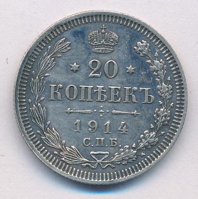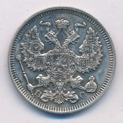 Лицевая сторона — гербовый орел, оборотная —обозначение номинала (20 копеекъ), окруженное венком из лавровой и дубовой ветвей и дата.