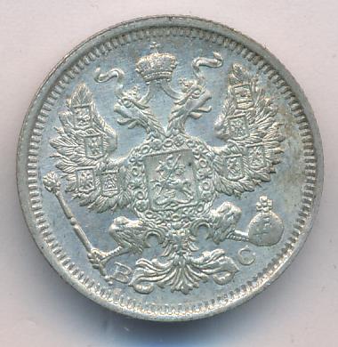 Лицевая сторона — гербовый орел, оборотная —обозначение номинала (20 копеекъ), окруженное венком из лавровой и дубовой ветвей и дата.