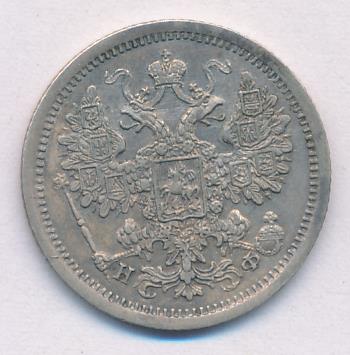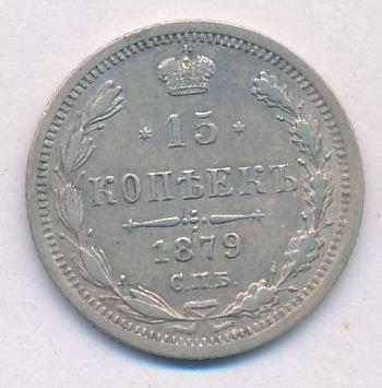 Лицевая сторона — гербовый орел, оборотная —обозначение номинала (15 копеекъ), окруженное венком из лавровой и дубовой ветвей и дата.