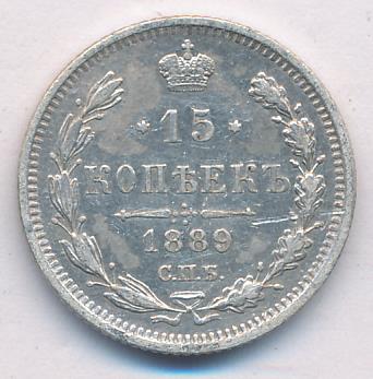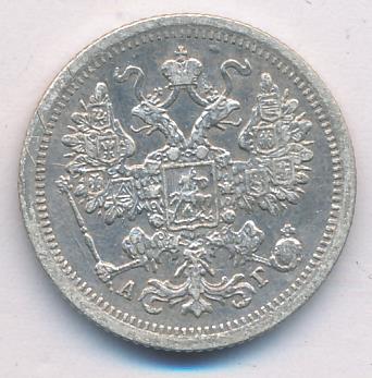 Лицевая сторона — гербовый орел, оборотная —обозначение номинала (15 копеекъ), окруженное венком из лавровой и дубовой ветвей и дата.