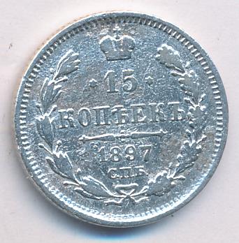 Лицевая сторона — гербовый орел, оборотная —обозначение номинала (15 копеекъ), окруженное венком из лавровой и дубовой ветвей и дата.