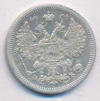 Лицевая сторона — гербовый орел, оборотная —обозначение номинала (15 копеекъ), окруженное венком из лавровой и дубовой ветвей и дата.