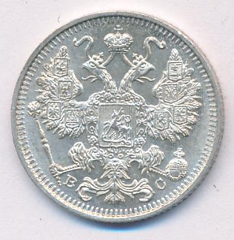 Лицевая сторона — гербовый орел, оборотная —обозначение номинала (15 копеекъ), окруженное венком из лавровой и дубовой ветвей и дата.