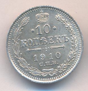 Лицевая сторона — гербовый орел, оборотная —обозначение номинала (10 копеекъ), окруженное венком из лавровой и дубовой ветвей и дата.