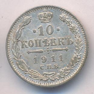 Лицевая сторона — гербовый орел, оборотная —обозначение номинала (10 копеекъ), окруженное венком из лавровой и дубовой ветвей и дата.