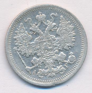 Лицевая сторона — гербовый орел, оборотная —обозначение номинала (15 копеекъ), окруженное венком из лавровой и дубовой ветвей и дата.