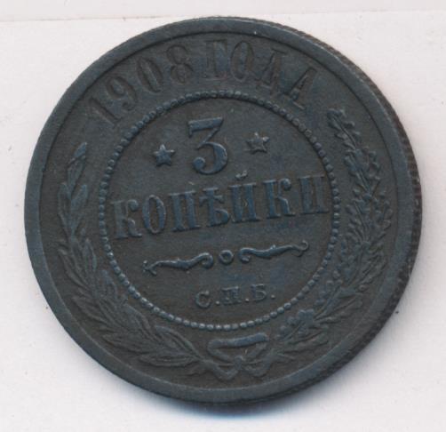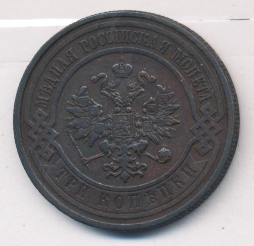 Лицевая сторона — двуглавый орел, надпись МЕДНАЯ РОССIЙСКАЯ МОНЕТА и обозначение номинала (три копейки); оборотная — обозначение номинала (3 копейки) в бусовом ободке и дата. Нормативный вес — 9,83 грамма, гурт рубчатый.