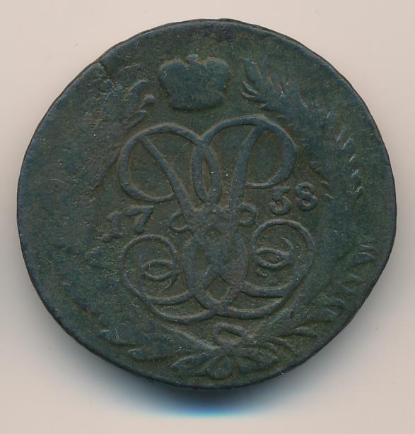 Лицевая сторона — Георгий Победоносец и обозначение номинала (две копейки) в картуше, оборотная — сложный симметричный вензель Елизаветы Петровны и дата. Нормативный вес — 20,48 грамма.