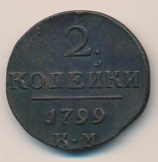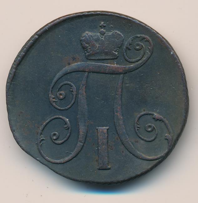 Лицевая сторона — вензель Павла I под короной, оборотная — номинал (2 копейки) и дата. Нормативный вес — 20,48 грамма, гурт — шнур.
