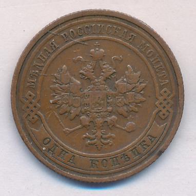 Лицевая сторона — двуглавый орел, надпись МЕДНАЯ РОССIЙСКАЯ МОНЕТА и обозначение номинала (одна копейка); оборотная — обозначение номинала (1 копейка) в бусовом ободке и дата. Нормативный вес — 3,28 грамма, гурт рубчатый.