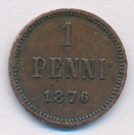 Лицевая сторона — вензель Александра II, оборотная — номинал (1 PENNIA) и дата. Нормативный вес — 1,28 грамма, гурт гладкий.