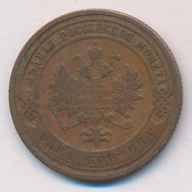 Лицевая сторона — двуглавый орел, надпись МЕДНАЯ РОССIЙСКАЯ МОНЕТА и обозначение номинала (одна копейка); оборотная — обозначение номинала (1 копейка) в бусовом ободке и дата. Нормативный вес — 3,28 грамма, гурт рубчатый.