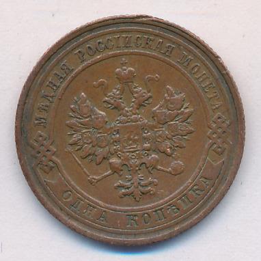 Лицевая сторона — двуглавый орел, надпись МЕДНАЯ РОССIЙСКАЯ МОНЕТА и обозначение номинала (одна копейка); оборотная — обозначение номинала (1 копейка) в бусовом ободке и дата. Нормативный вес — 3,28 грамма, гурт рубчатый.