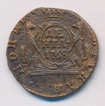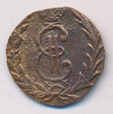 Лицевая сторона - два соболя поддерживают щит с обозначением номинала (денга) под короной, надпись «СИБИРСКАЯ МОНЕТА». Оборотная — вензель Екатерины II в венке из пальмовой и лавровой ветвей. Гурт — шнур, вес — 3,28 грамма.