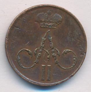 Лицевая сторона — вензель Николая I, оборотная — обозначение номинала (денежка) и дата. Нормативный вес — 2,56 грамма, гурт гладкий.