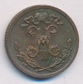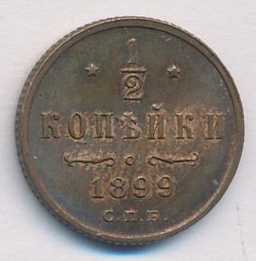 Лицевая сторона — вензель Александра II в венке из лавровой и дубовой ветвей; оборотная — обозначение номинала (1/2 копейки) и дата. Нормативный вес — 1,64 грамма, гурт рубчатый.