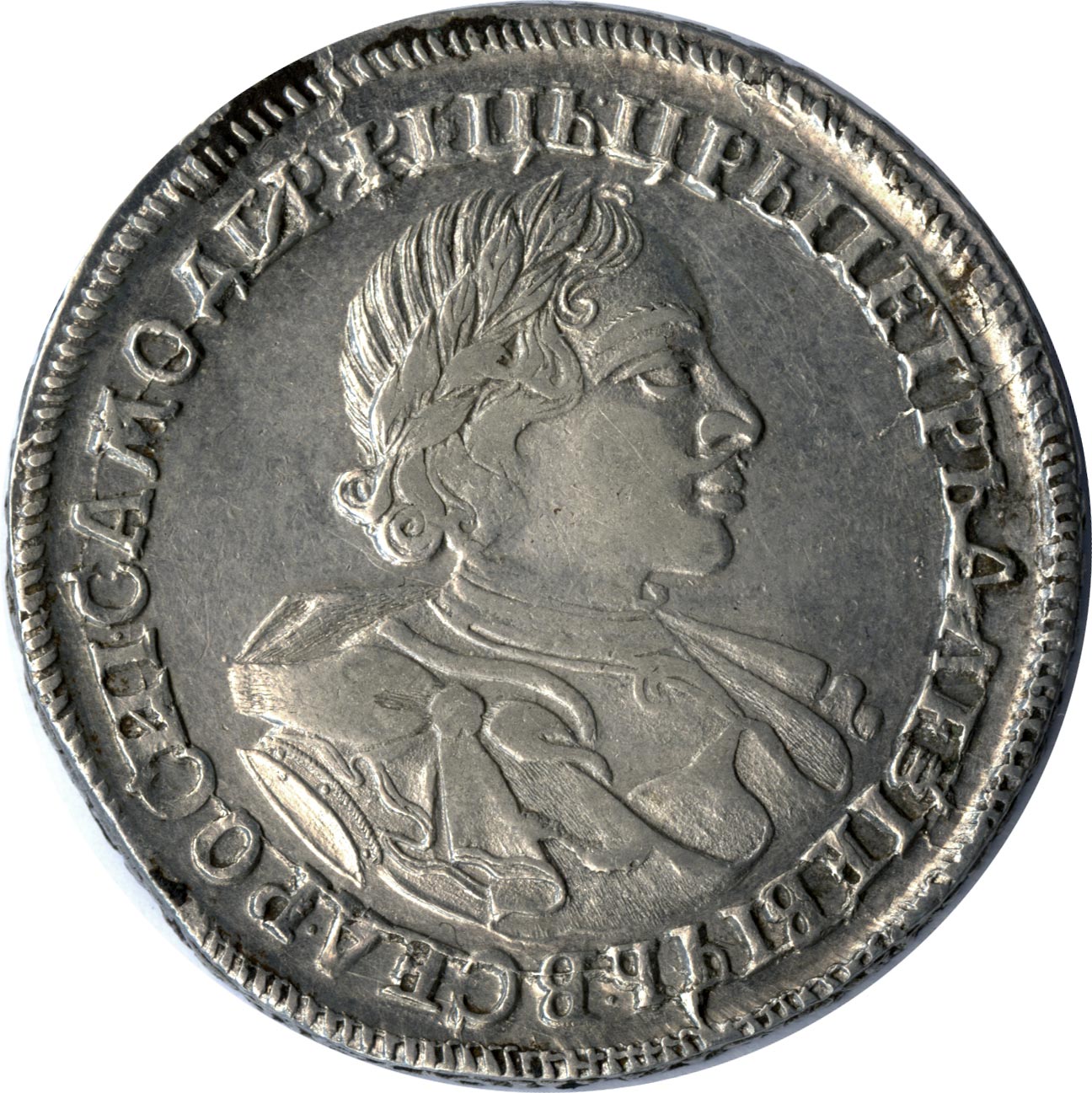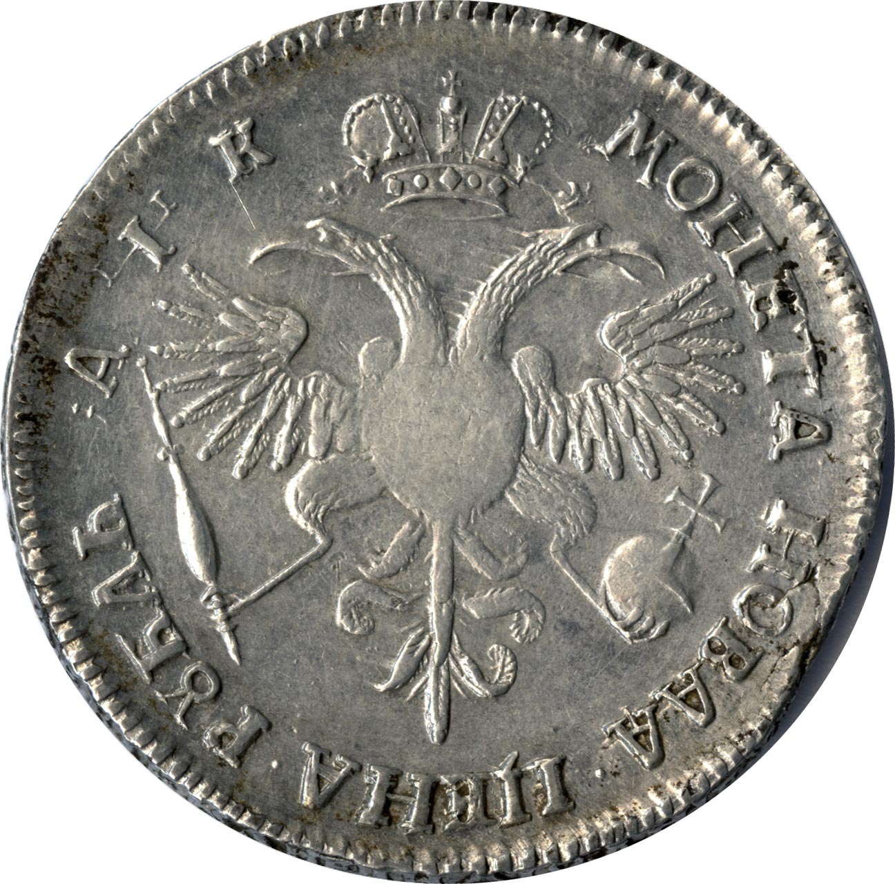 Легенда лицевой стороны - «Царь Петр Алексеевич Всея России Самодержец», оборотной - «Монета новая цена рубль» и дата кириллицей. Проба монет — 729, нормативный вес — 28, 44 грамма.