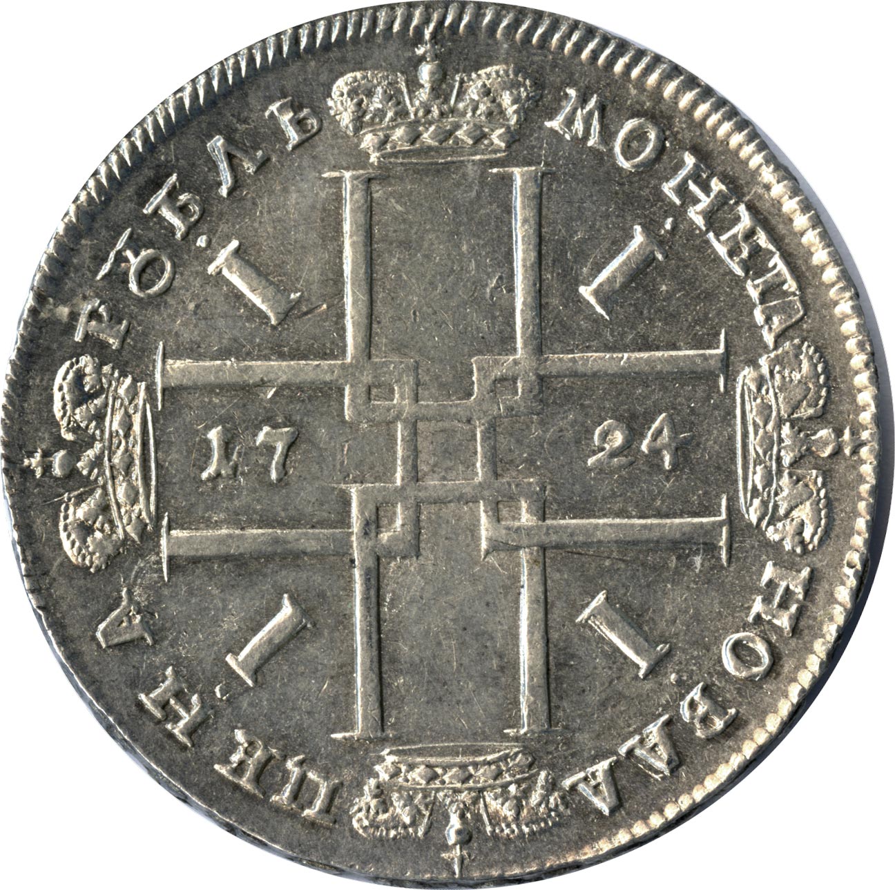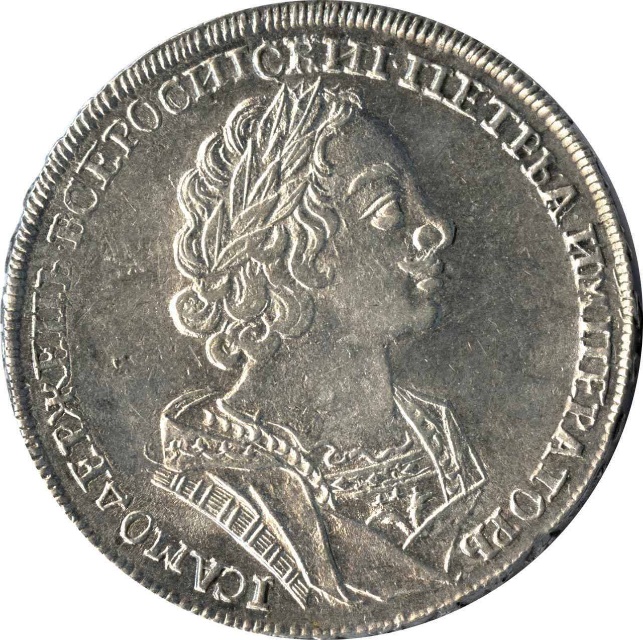 Легенда лицевой стороны - «Петр А (Алексеевич) Император и Самодержец Всероссийский», оборотной - «Монета новая цена рубль» и дата арабскими цифрами. Проба монет — 729, вес 28, 44 грамма.