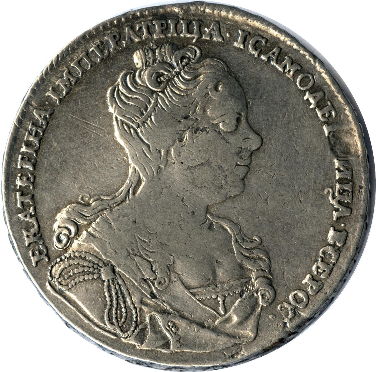 Гурт на монетах Кадашевского двора - «россискоi рубль московского двора», гурт на петербургских монетах — шнур (насечки вправо или влево). Легенда лицевой стороны - «Екатерина императрица и самодержица всерос», оборотной - «Монета новая цена рубль» и дата арабскими цифрами. Проба -729, нормативный вес — 28,44 грамма.