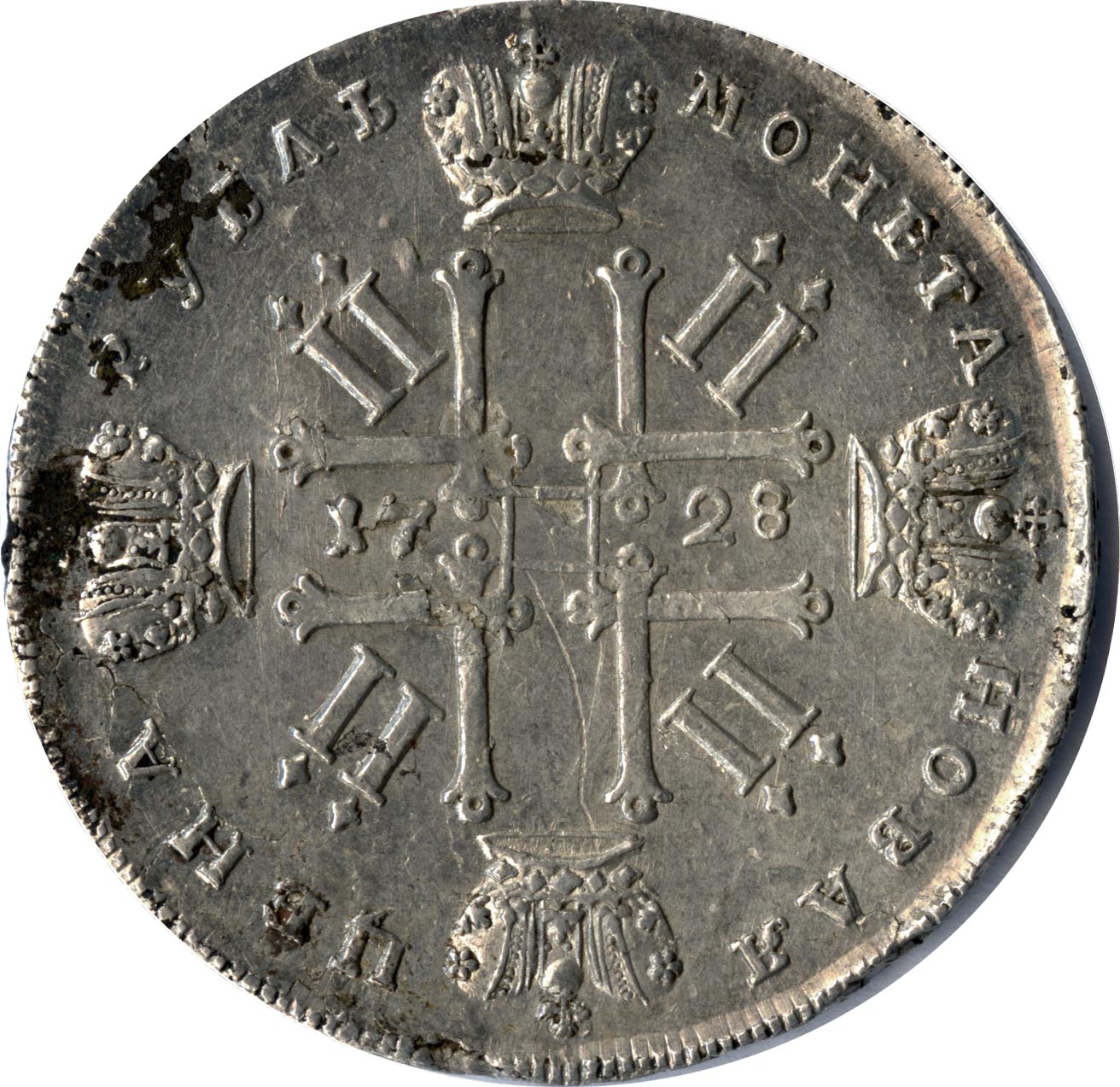 Рубль 1728-1729 годов «Голова внутри надписи»