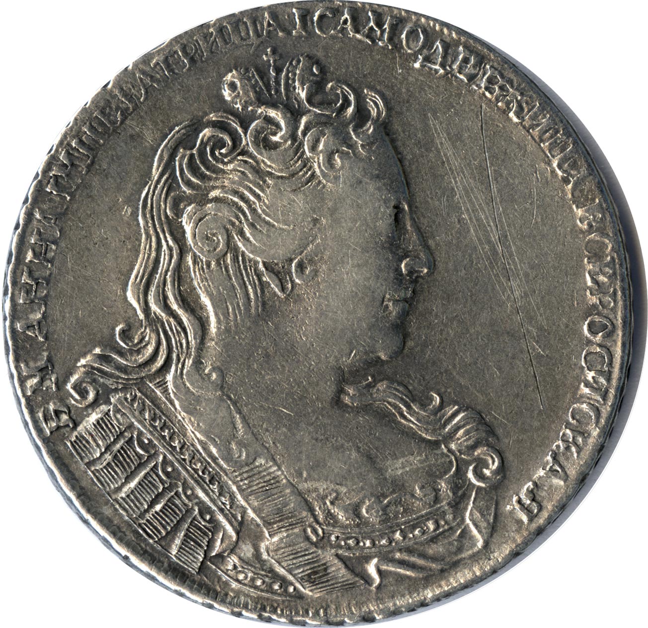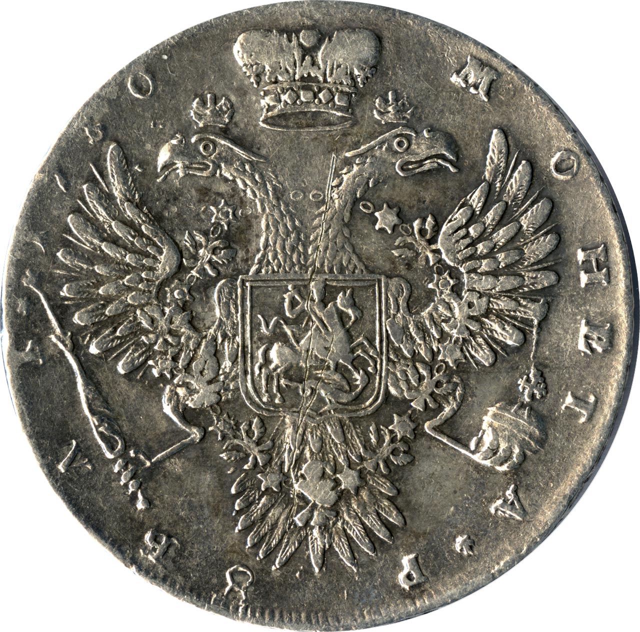 Выделяют два типа по направлению линии корсажа; различаются особенностями прически и убранства. На лицевой стороне портрет императрицы и круговая надпись «Б М (божией милостью) анна императрица и самодержица всеросиская», на оборотной стороне двуглавый орел и надпись «монета рубль» и дата.
