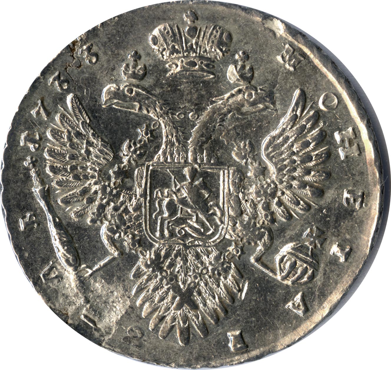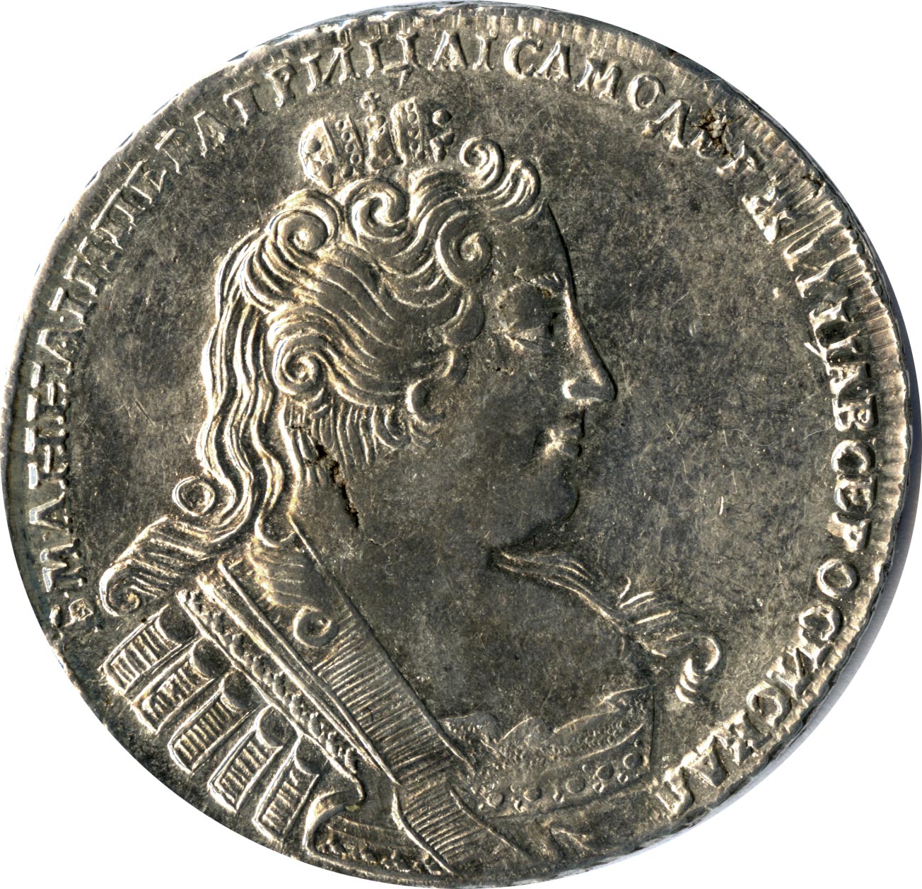 Рубль 1731-1734 годов «С брошью на груди/Без броши на груди»