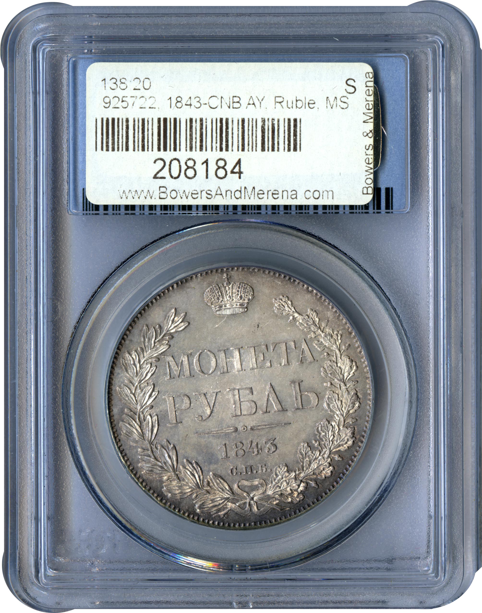 Лицевая сторона — новый гербовый орел с поднятыми крыльями и надпись «ЧИСТОГО СЕРЕБРА 4 ЗОЛОТНИКА 21 ДОЛЯ», оборотная — надпись «МОНЕТА РУБЛЬ», окруженная венком из лавровой и дубовой ветвей и дата.