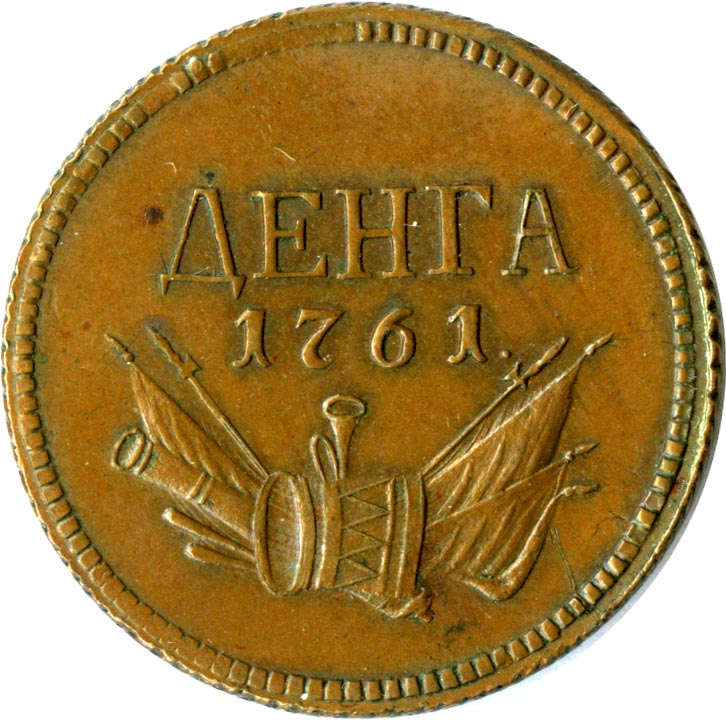 С 1760 года граф П. И. Шувалов начинает попытки очередного удвоения медной стопы — уже до 32 рублей из пуда. Проект получил утверждение и начал реализовываться при Петре III. Указом от 17 января 1762 года норма в 32 рубля из пуда устанавливается для медных монет всех номиналов, самым мелким из которых теперь становится денга.