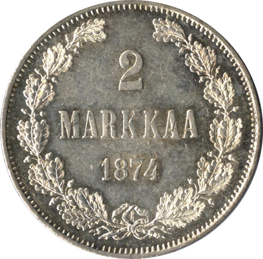 По содержанию металлов и стоимости марка составляет четверть от рубля. Чеканились монеты на вновь построенном монетном дворе в Гельсингфорсе (Хельсинки). В надписи на лицевой стороне серебряных монет достоинством 1 и 2 марки указано количество штук (2 марки — 47,24) из фунта сплава серебра.
