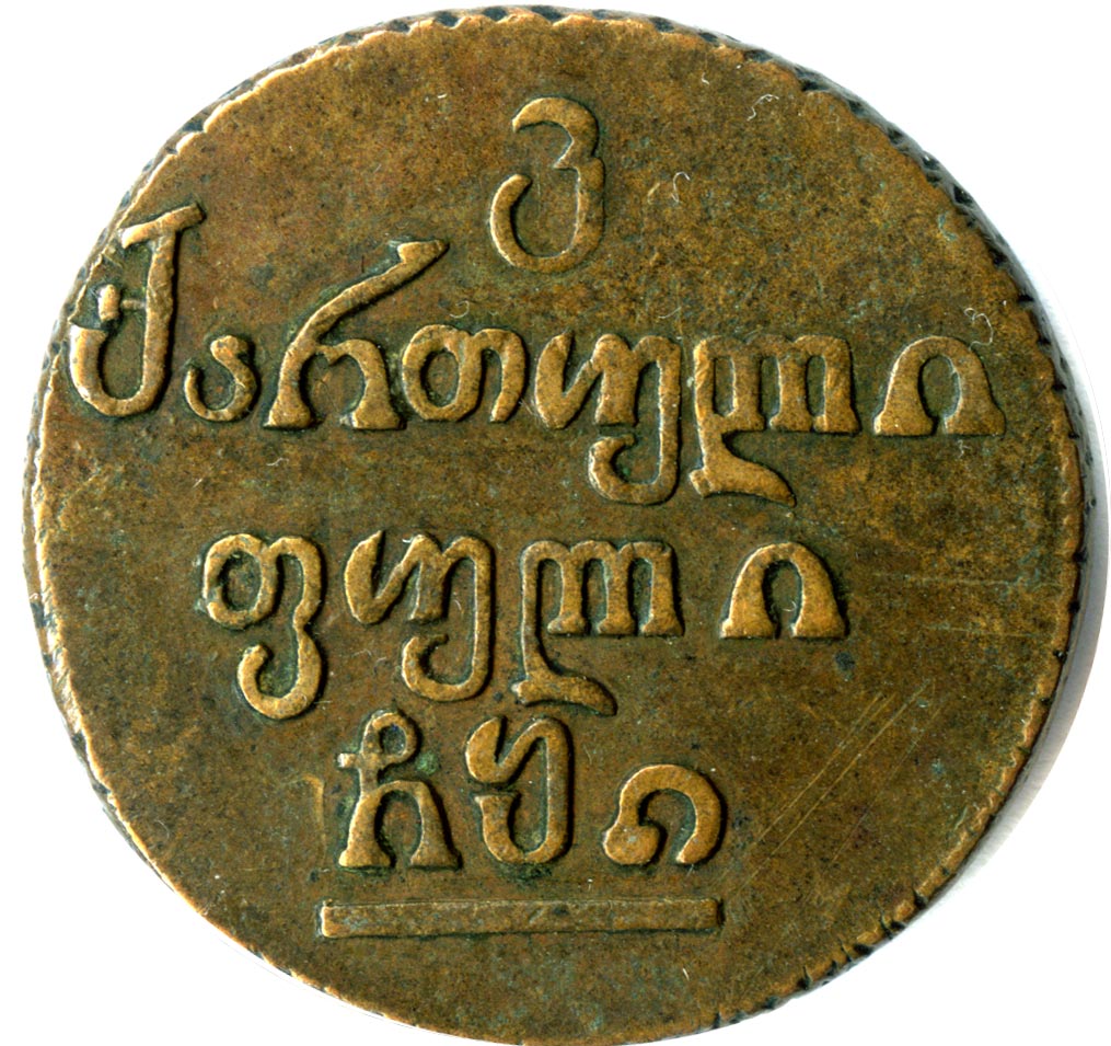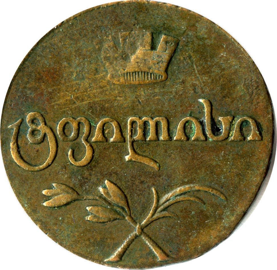 Надпись под короной на лицевой стороне переводится как «Тбилиси». Надпись под цифрой номинала на оборотной стороне серебряных монет - «грузинское серебро», медных монет - «грузинские деньги».