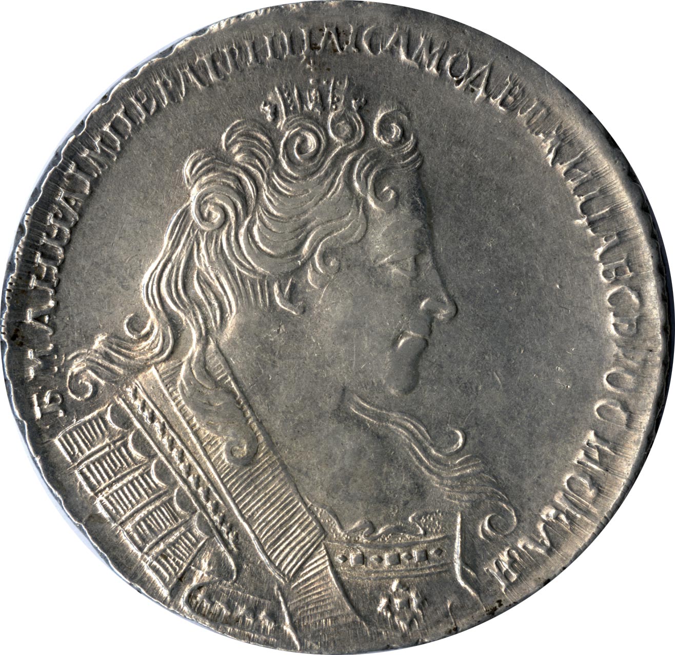 Рубль 1731-1734 годов «С брошью на груди/Без броши на груди»