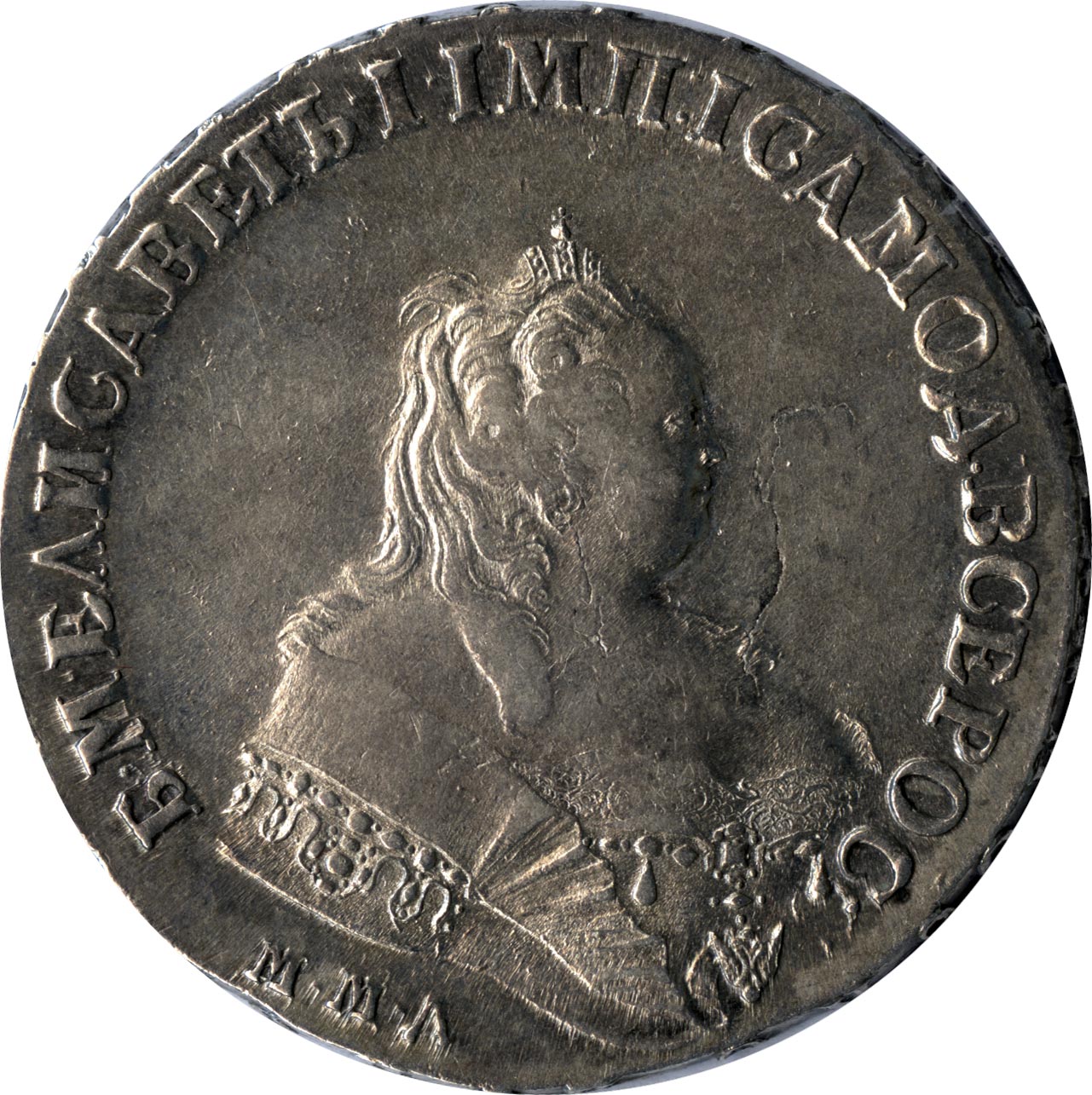 Красный двор в Москве начинает тиснение монет с портретом Елизаветы в 1742 году. Портрет на московских монетах существенно отличается от петербургских типов. Правое плечо не прикрыто плащом, под бюстом знак ордена Св. Андрея (в 1754 году орденская лента становится уже).