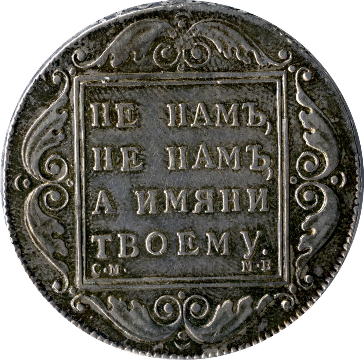 Лицевая сторона - крестообразная монограмма из четырех П и I в центре, надпись «МОНЕТА ЦЕНА РУБЛЬ» и дата, оборотная - надпись «НЕ НАМ, НЕ НАМ, А ИМЯНИ ТВОЕМУ» в картуше. Проба — 868, нормативный вес — 20,73 грамма, гурт — надпись «восемдесятъ третеи съ одною третью пробы».