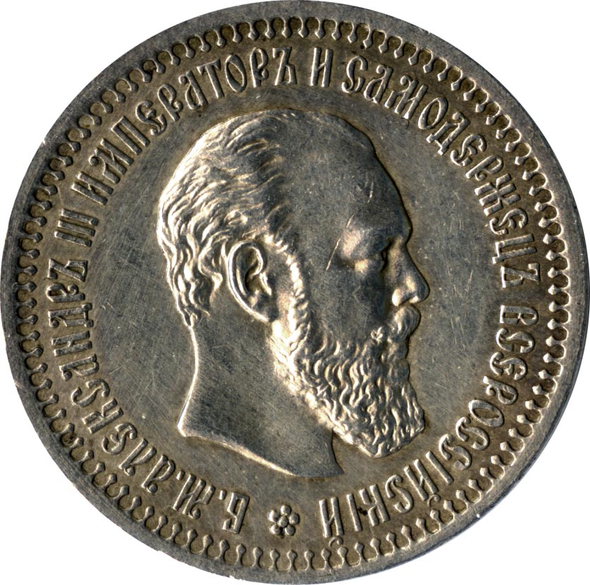Лицевая сторона — портрет Александра III в круговой надписи «Б.М.АЛЕКСАНДРЪ III ИМПЕРАТОРЪ И САМОДЕРЖЕЦЪ ВСЕРОССIЙСКIЙ», оборотная — двуглавый орел, обозначение номинала (50 копеекъ) и дата.