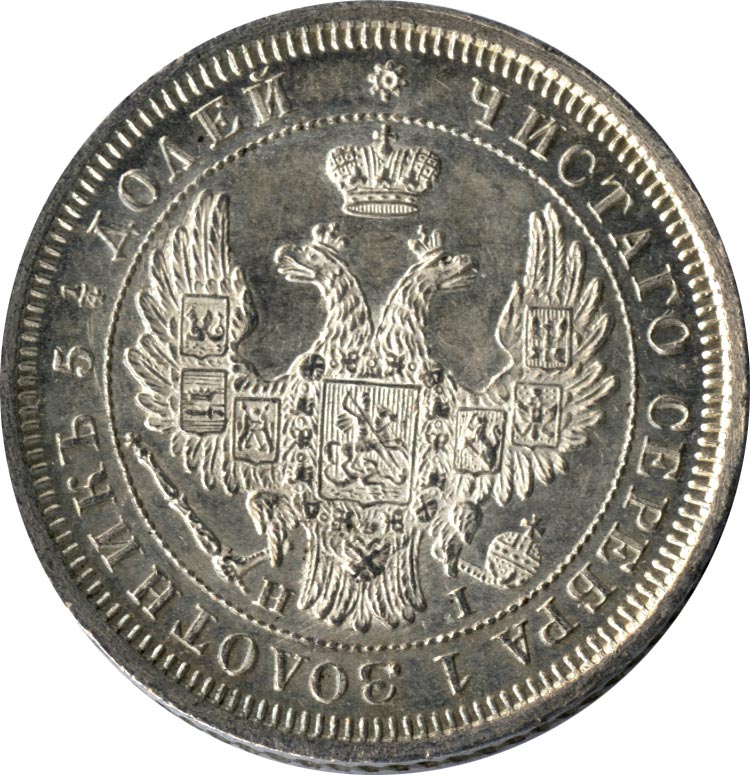 В январе 1830 года Николай I дает министру финансов Е. Ф. Канкрину устное указание «о сделании на золотых и серебряных монетах орла как на платиновых». На новом гербе крылья орла подняты, на них размещены шесть местных гербов — казанский, астраханский, сибирский, польский, херсонесский и финляндский. На груди орла — московский герб, на головах — короны. С 1832 года заодно с орлом изменяются и композиции обеих сторон монет: на лицевой стороне содержание чистого серебра в монете теперь обозначает круговая надпись. Нужно помнить, что доставшаяся Николаю в наследство от трех прежних правлений масса обесцененных бумажных денег является острой экономической проблемой. Правительство Николая удерживает объем ассигнаций строго на одном уровне, не прибегая к дополнительным эмиссиям; курс рубля ассигнациями колеблется вокруг 35 копеек.