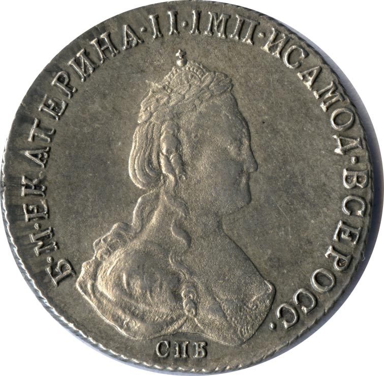 Через 15 лет после дворцового переворота, в результате которого на российский престол взошла Екатерина II, она ощущает, что сравнялась величием с первым российским императором. 22 октября 1776 года генерал-прокурор Вяземский передает два ее портрета с указанием «для рублевой и прочей монеты одежду сделать Императорскую, а на главе, сверх ныне означенного лаврового венка, корону».