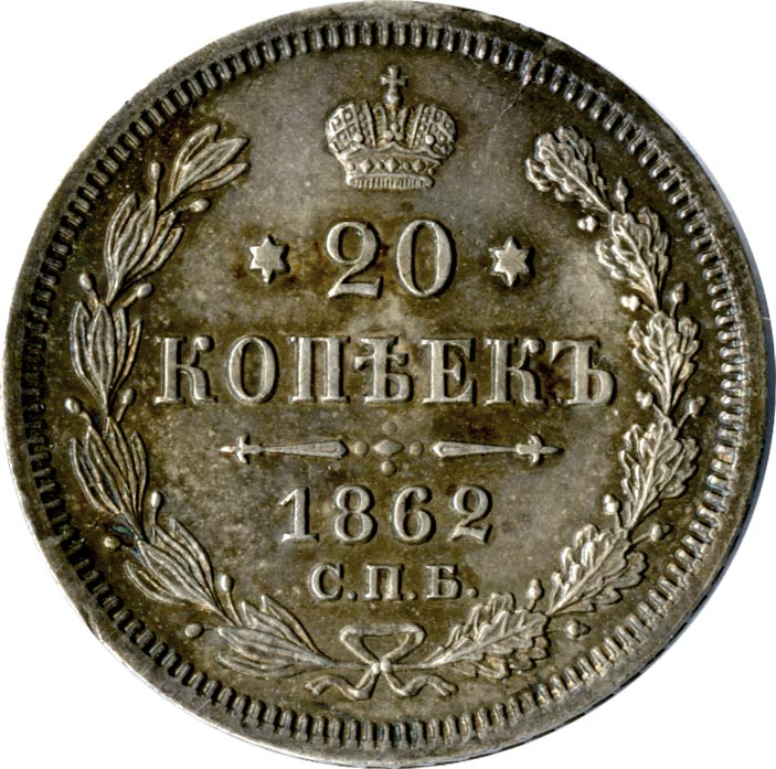 В 1861 году из-за перегруженности Петербургского двора заказы на чеканку части 20, 15 и 10 копеек размещаются на Парижском и Страсбургском монетных дворах. На этих монетах тот же знак двора СПБ, но отсутствует знак минцмейстера.