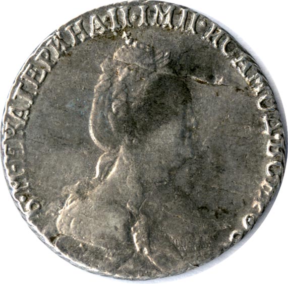 Тимофей Иванов выполняет задание, и 10 января 1777 года пробы утверждаются. Новые монеты выполнены в плоском рельефе, а в изображении орла ощутимо влияние гедлингеровского типа. Портрет незначительно изменяется в 1783 году — на нем императрица выглядит несколько старше. Начиная с этого типа, серебряные монеты выпускаются только в Петербурге.