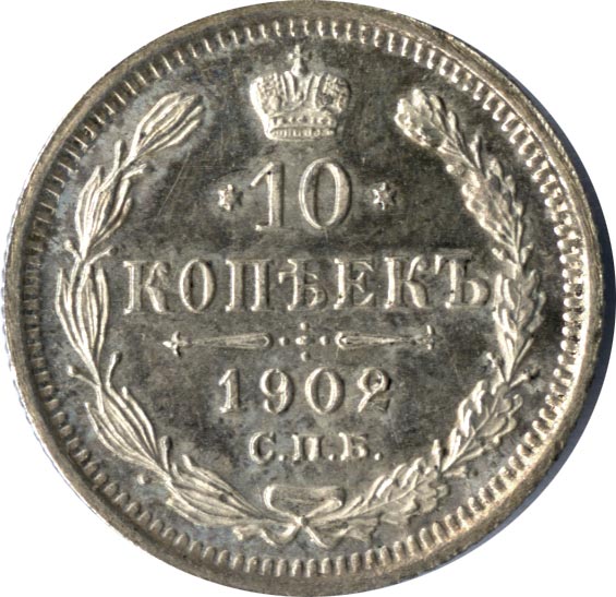 Лицевая сторона — гербовый орел, оборотная —обозначение номинала (10 копеекъ), окруженное венком из лавровой и дубовой ветвей и дата.