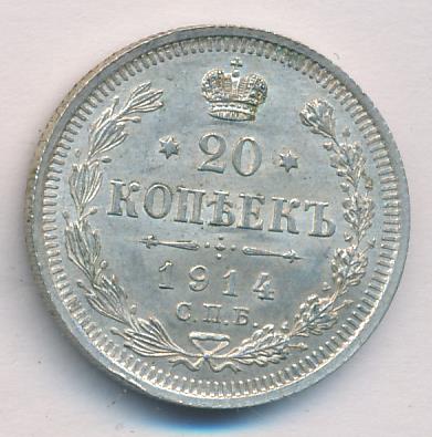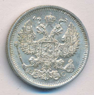 Лицевая сторона — гербовый орел, оборотная —обозначение номинала (20 копеекъ), окруженное венком из лавровой и дубовой ветвей и дата.