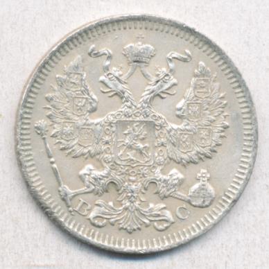 Лицевая сторона — гербовый орел, оборотная —обозначение номинала (20 копеекъ), окруженное венком из лавровой и дубовой ветвей и дата.